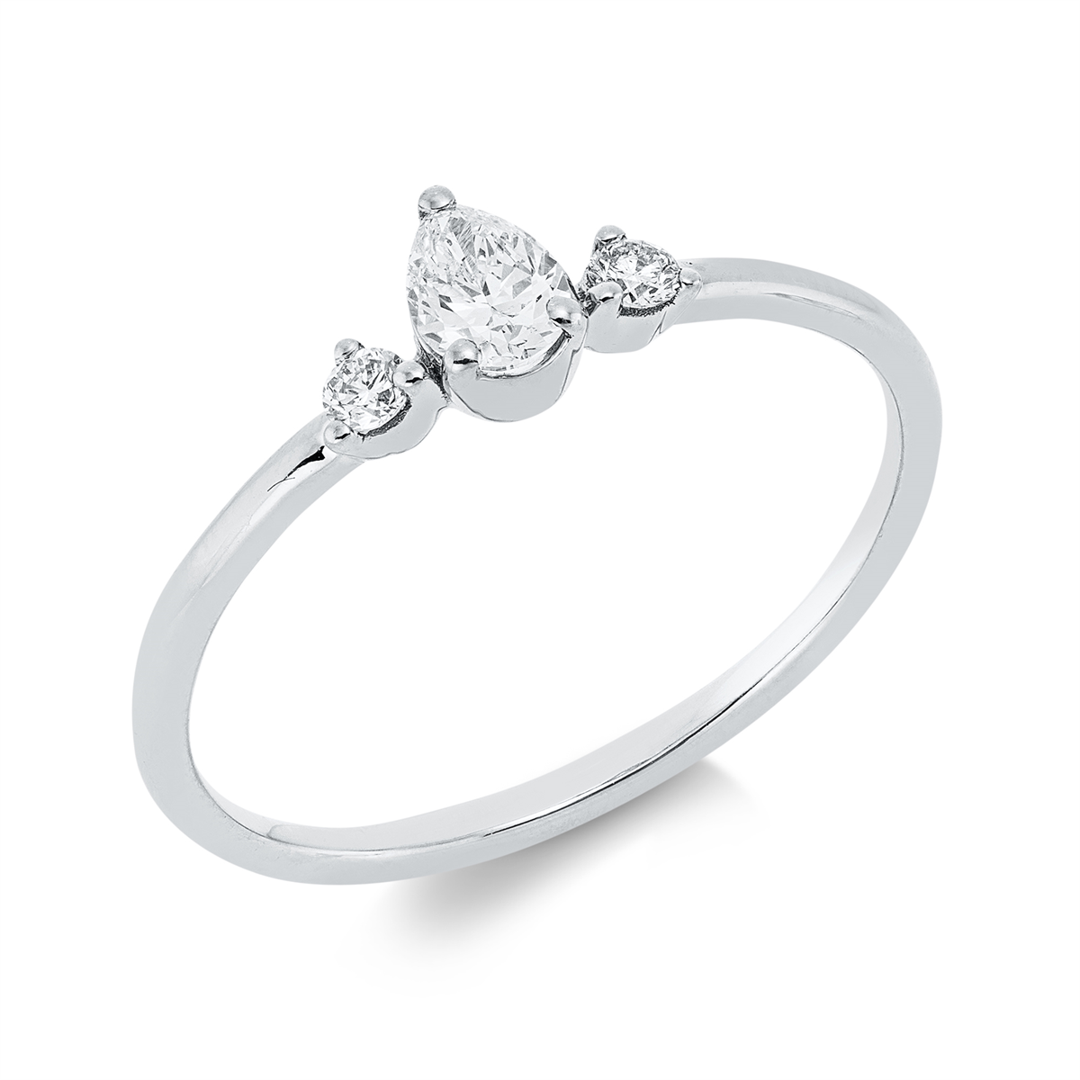 Ring 18 kt GG, 1 Tropfen 0,20 ct, TW-si, 2 Brillanten 0,05 ct, TW-si, H:8,4 mm, B:5,2 mm, Weite:54