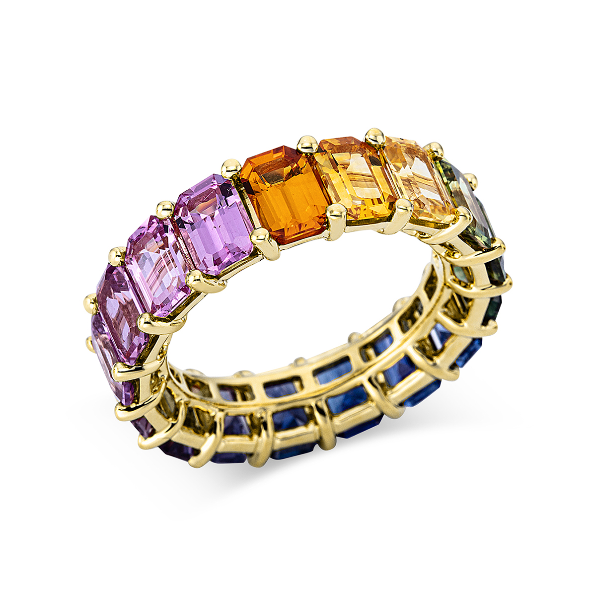Ring 18 kt GG, 17 Saphire 9,64 ct fancy, Weite:53