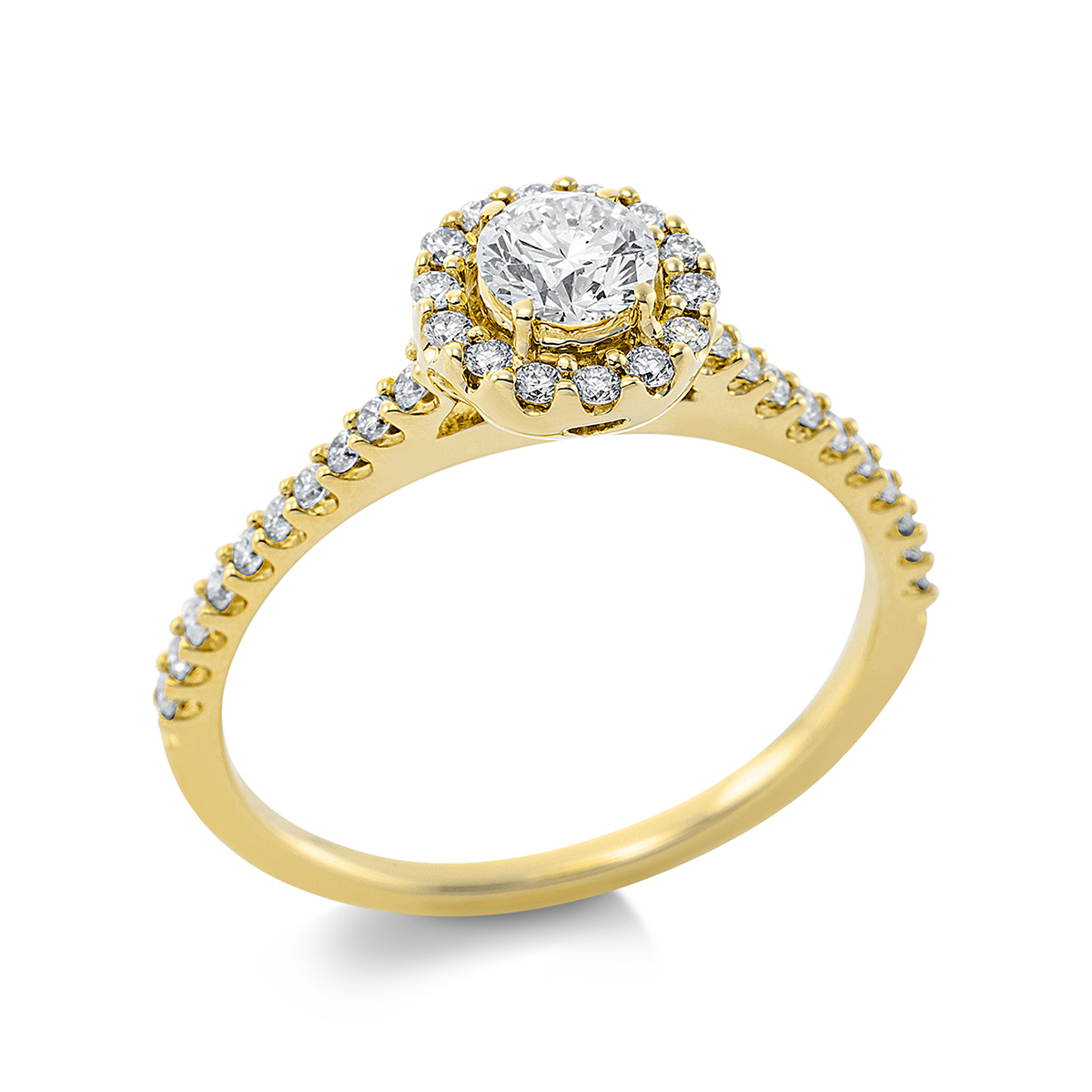 Ring 18 kt GG, 1 Brill. 0,33 ct, TW-si, 34 Brillanten 0,27 ct, TW-si, Ø:7,5 mm, Weite:54
