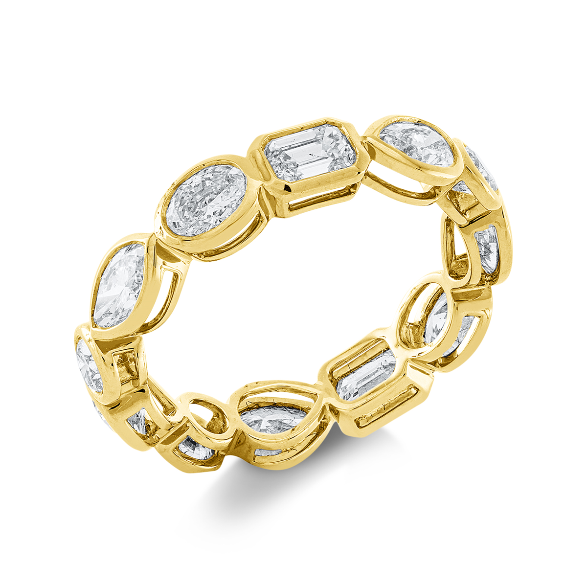 Ring 18 kt GG, 2 Oval 0,53 ct, TW-si, 2 Navette 0,47 ct, TW-si, 2 Sm.schliff 0,62 ct, TW-si, 3 Tropfen 0,73 ct, TW-si, 3 Brillanten 0,41 ct, TW-si, Weite:54