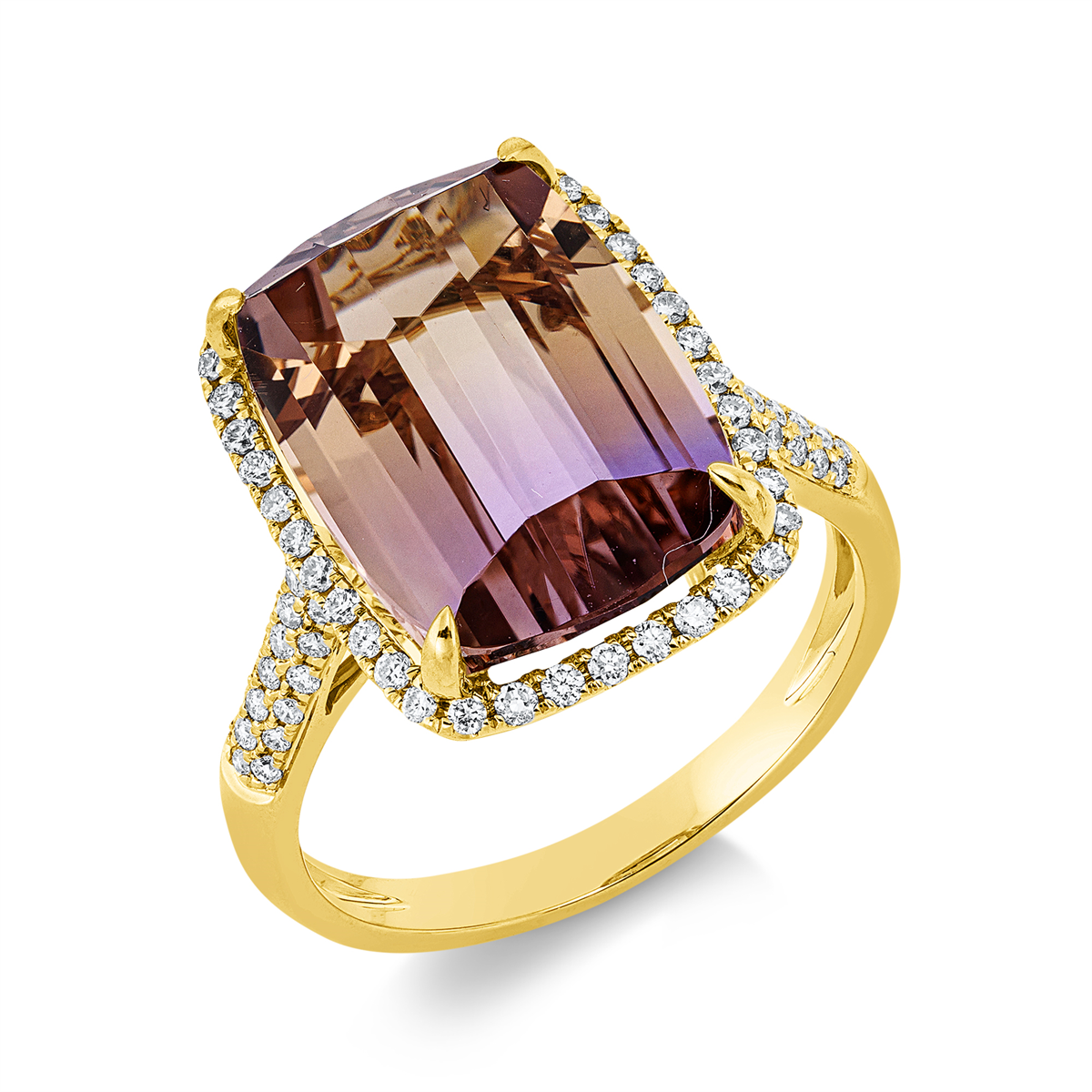 Ring 18 kt GG, 76 Brillanten 0,37 ct, TW-si, 1 Ametrin 5,67 ct multicolor, Weite:53