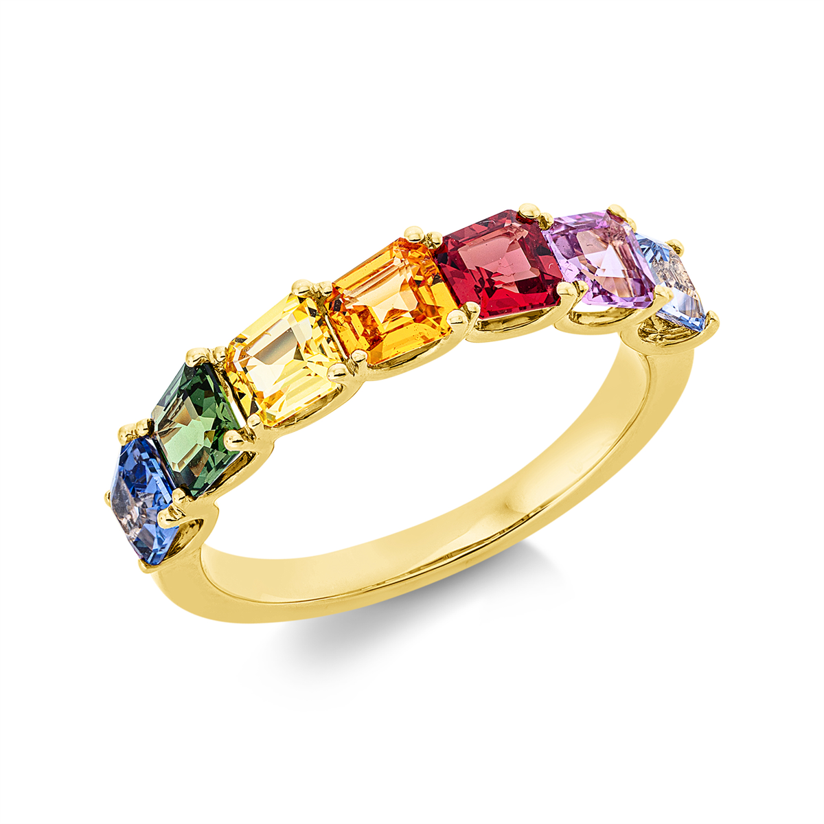Ring 18 kt GG, 7 Saphire 2,31 ct fancy, B:4,2 mm, Weite:53