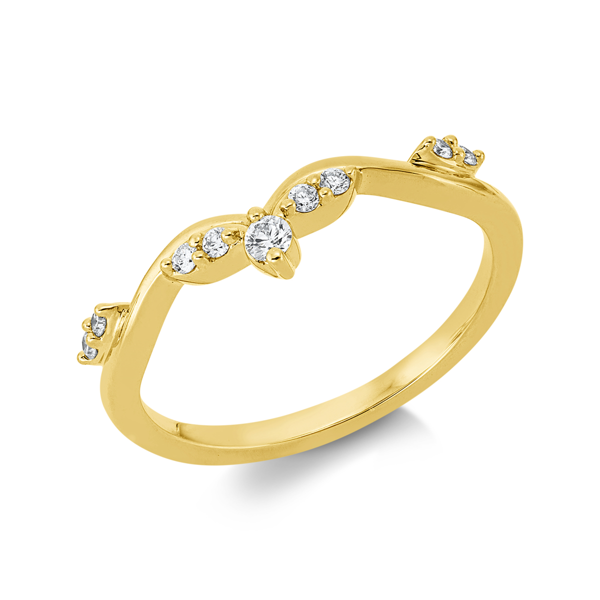 Ring 18 kt GG, 8 Brillanten 0,09 ct, TW-si, 1 Brill. 0,04 ct, TW-si, B:4,5 mm, Weite:53