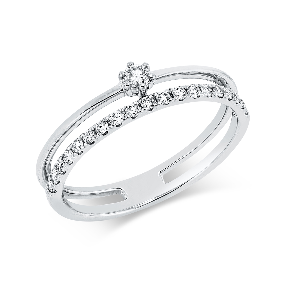 Ring 18 kt GG, 19 Brillanten 0,19 ct, TW-si, 1 Brill. 0,06 ct, TW-si, B:4,5 mm, Weite:53