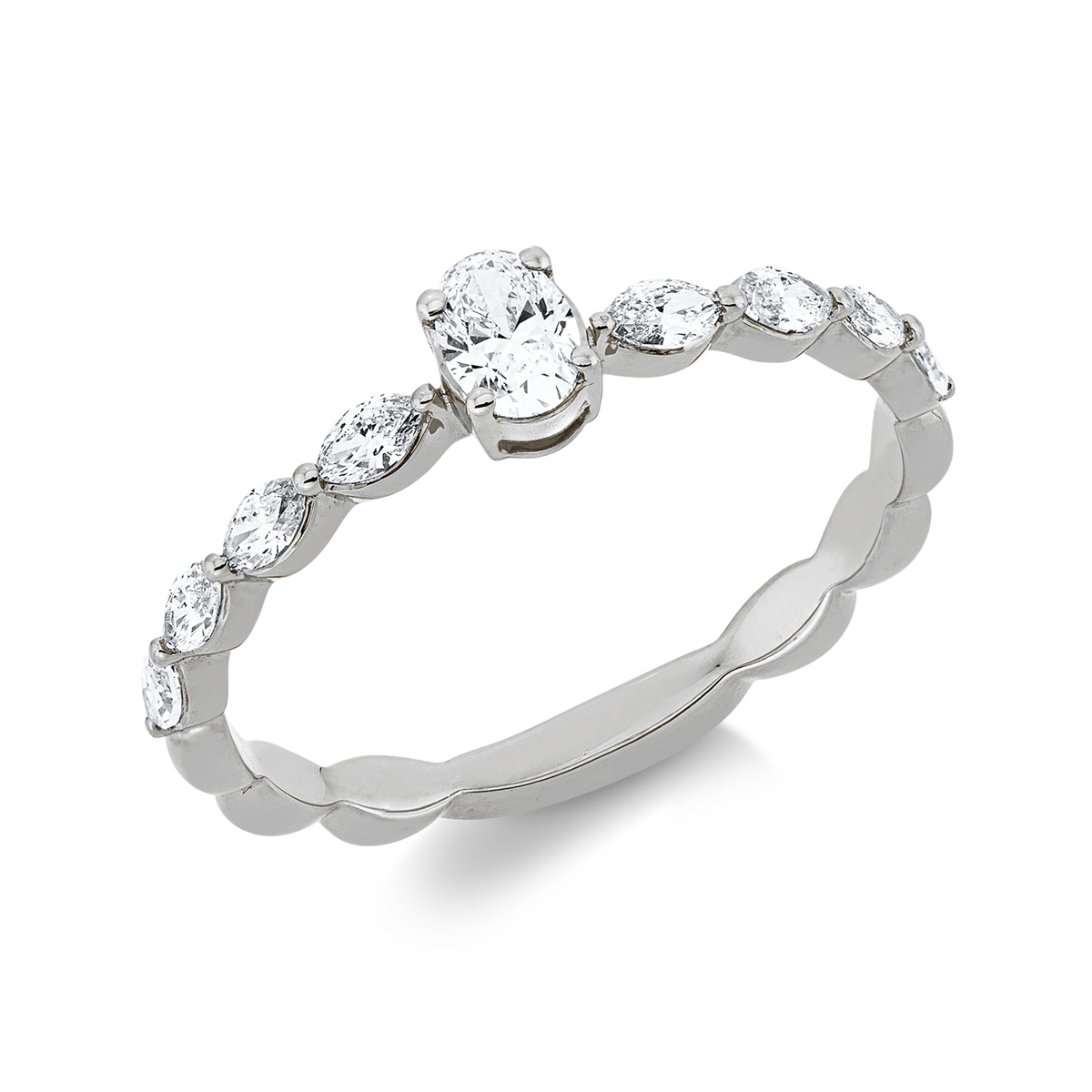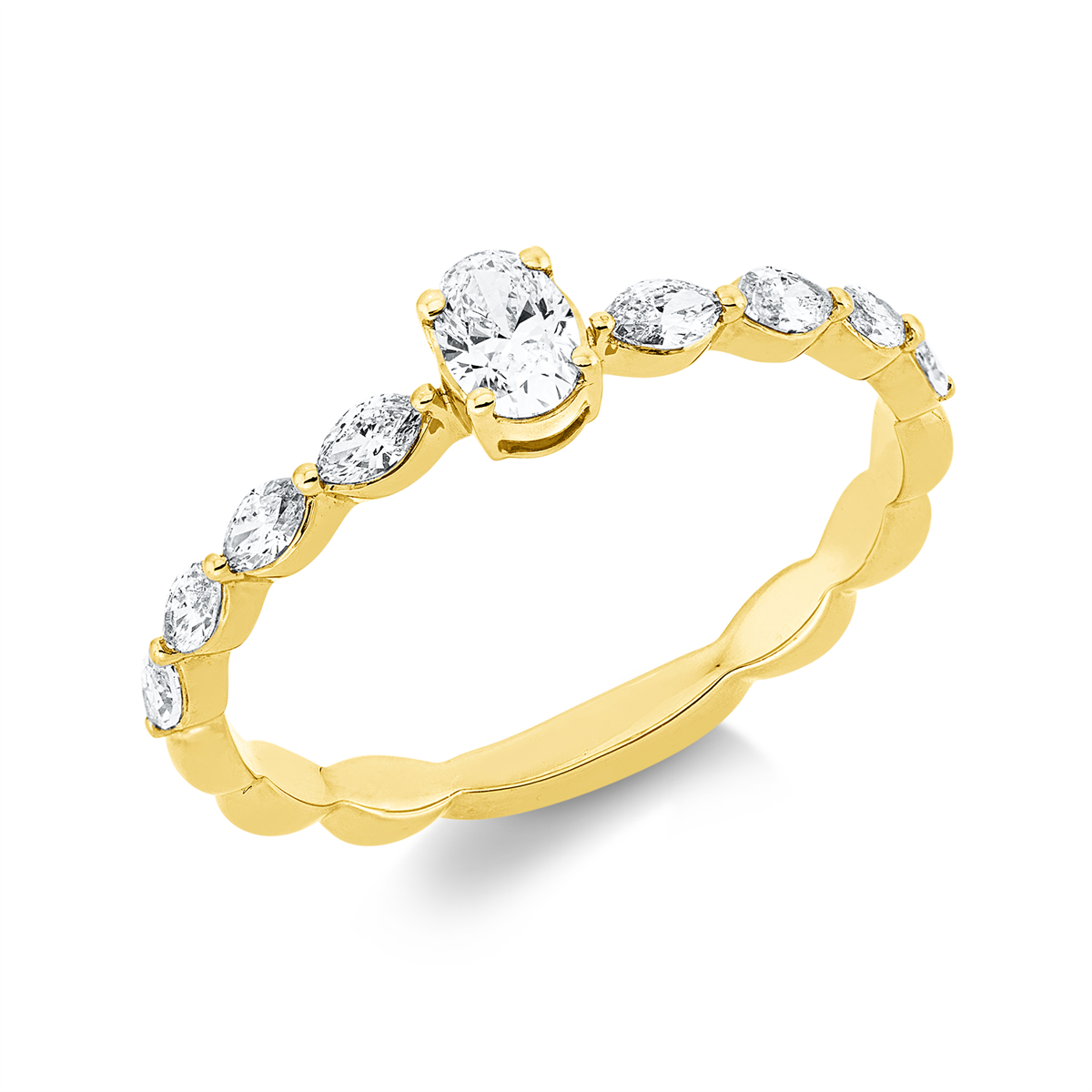 Ring 18 kt GG, 1 Oval 0,20 ct, TW-si, 8 Navette 0,29 ct, TW-si, H:3,5 mm, B:4,6 mm, Weite:54