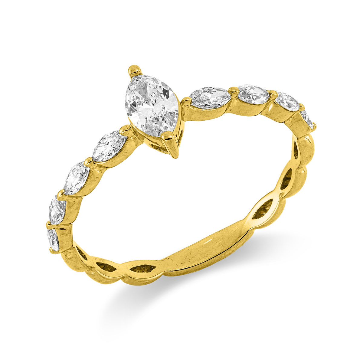 Ring 18 kt GG, 1 Navette 0,22 ct, TW-si, 8 Navette 0,25 ct, TW-si, Weite:54
