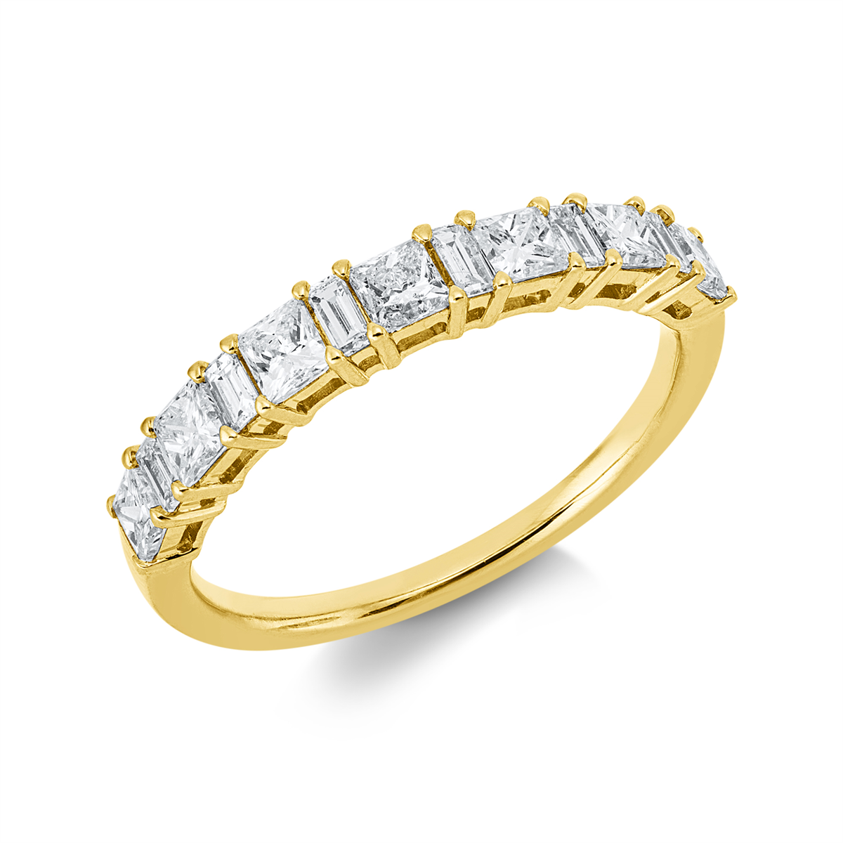 Ring 18 kt GG, 7 Princ. 0,73 ct, TW-si, 6 Baguette 0,18 ct, TW-si, B:3,1 mm, Weite:53