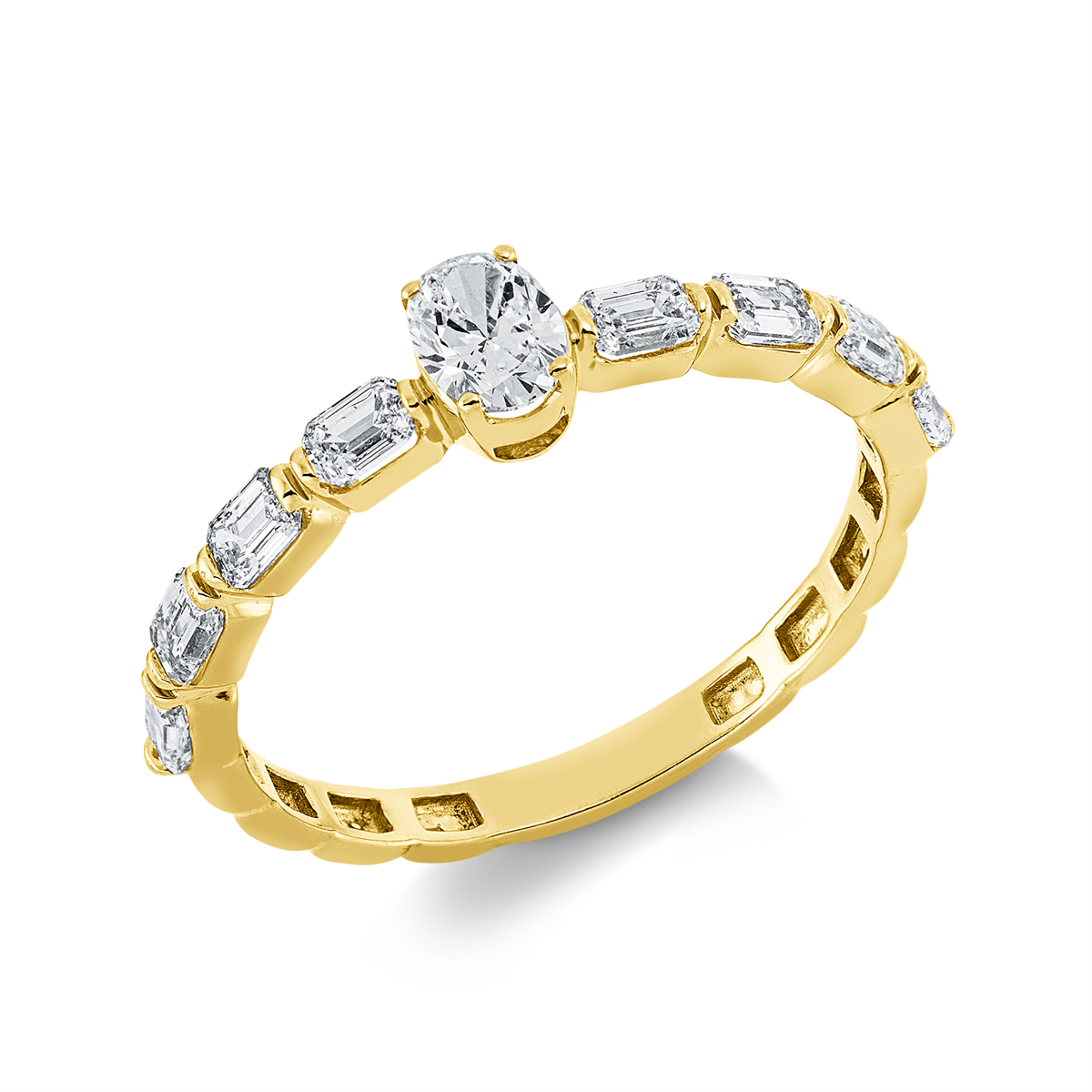 Ring 18 kt GG, 1 Oval 0,24 ct, TW-si, 8 Sm.schliff 0,59 ct, TW-si, Weite:54