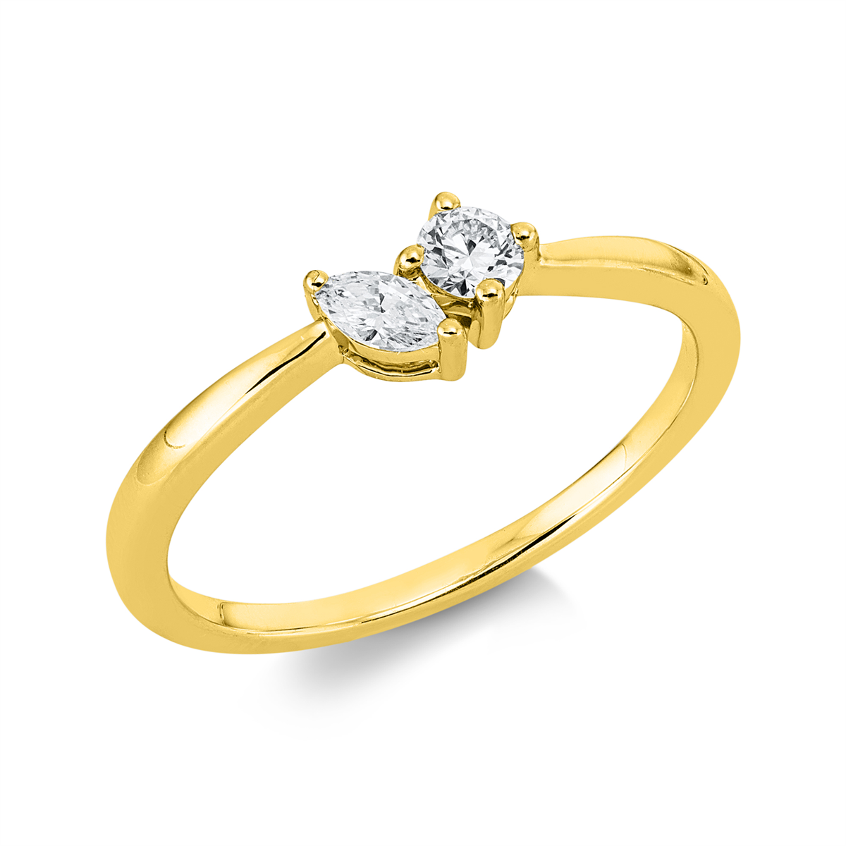 Ring 18 kt GG, 1 Navette 0,09 ct, TW-si, 1 Brill. 0,12 ct, TW-si, H:6,6 mm, B:4,8 mm, Weite:54