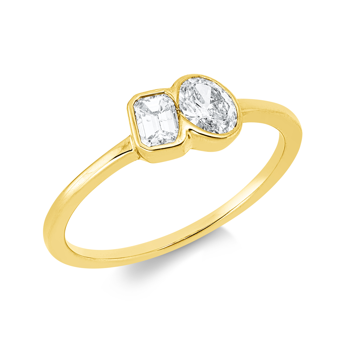 Ring 18 kt GG, 1 Sm.schliff 0,21 ct, TW-si, 1 Oval 0,31 ct, TW-si, H:7,8 mm, B:5,7 mm, Weite:54