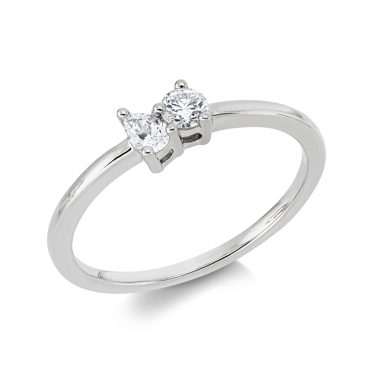 Ring 18 kt GG, 1 Tropfen 0,08 ct, TW-si, 1 Brill. 0,12 ct, TW-si, H:5,7 mm, B:4,1 mm, Weite:54