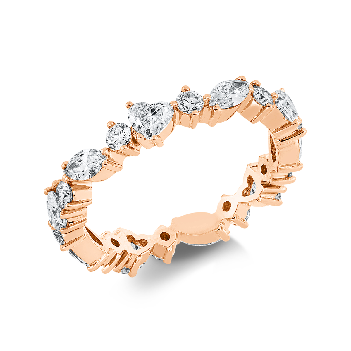 Ring 18 kt GG, 5 Herzschl. 0,74 ct, F-si, 10 Brillanten 0,42 ct, TW-si, 5 Navette 0,53 ct, F-si, B:4,0 mm, Weite:54