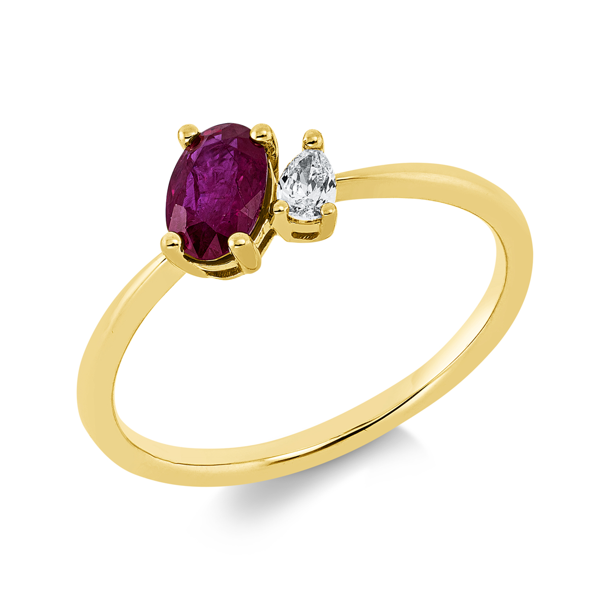 Ring 18 kt GG, 1 Tropfen 0,08 ct, TW-si, 1 Rubin 0,53 ct rot, Weite:54