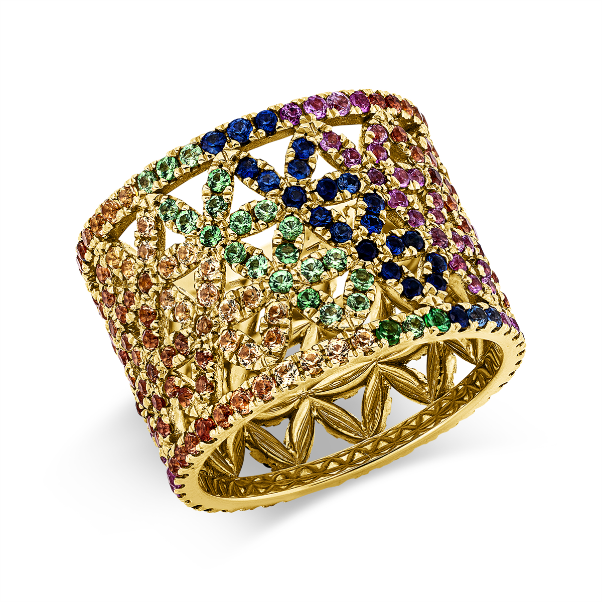 Ring 18 kt GG, 320 Saphire 4,02 ct fancy, B:15,1 mm, Weite:54