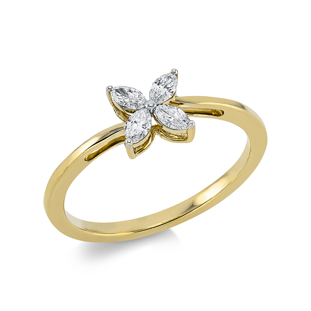Ring 18 kt GG, 4 Navette 0,27 ct, TW-si, H:6,3 mm, B:6,1 mm, Weite:54