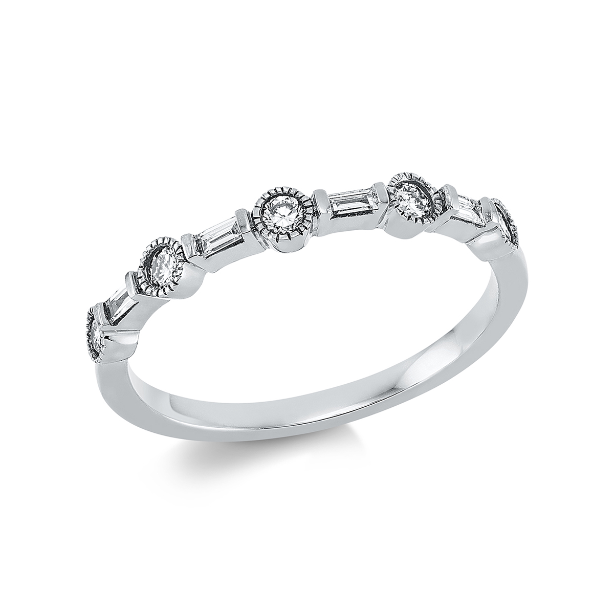 Ring 18 kt GG, 5 Brillanten 0,17 ct, TW-si, 4 Baguette 0,08 ct, TW-si, Weite:54