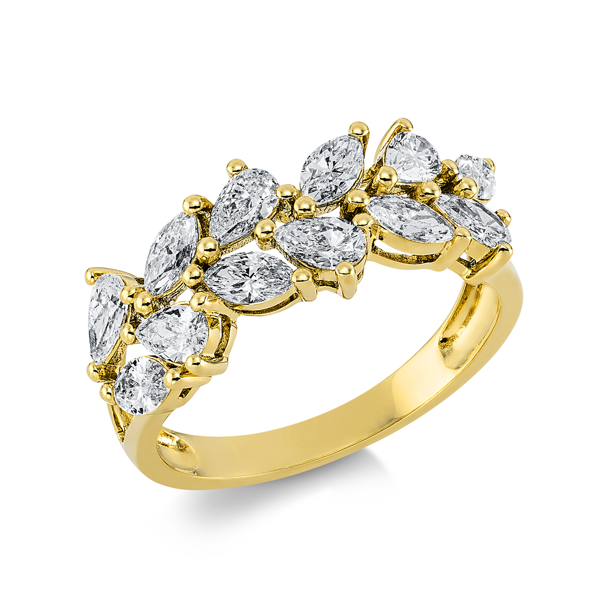 Ring 18 kt GG, 6 Navette 0,65 ct, TW-vsi, 6 Tropfen 0,69 ct, TW-vsi, Weite:54