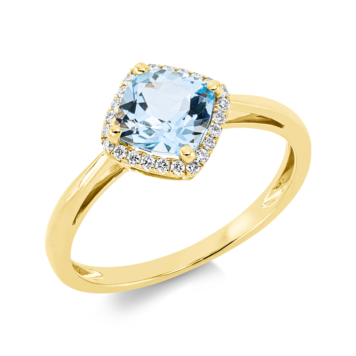 Ring 18 kt GG, 24 Brillanten 0,10 ct, TW-si, 1 Topas 1,40 ct sky blue, Weite:53