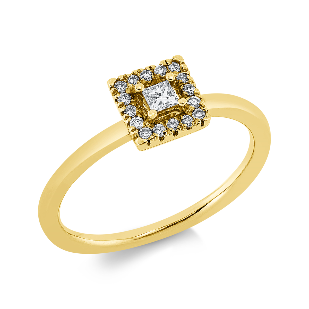 Ring 18 kt GG, 1 Princ. 0,08 ct, TW-vsi, 16 Brillanten 0,08 ct, TW-si, H:6,4 mm, B:6,4 mm, Weite:53