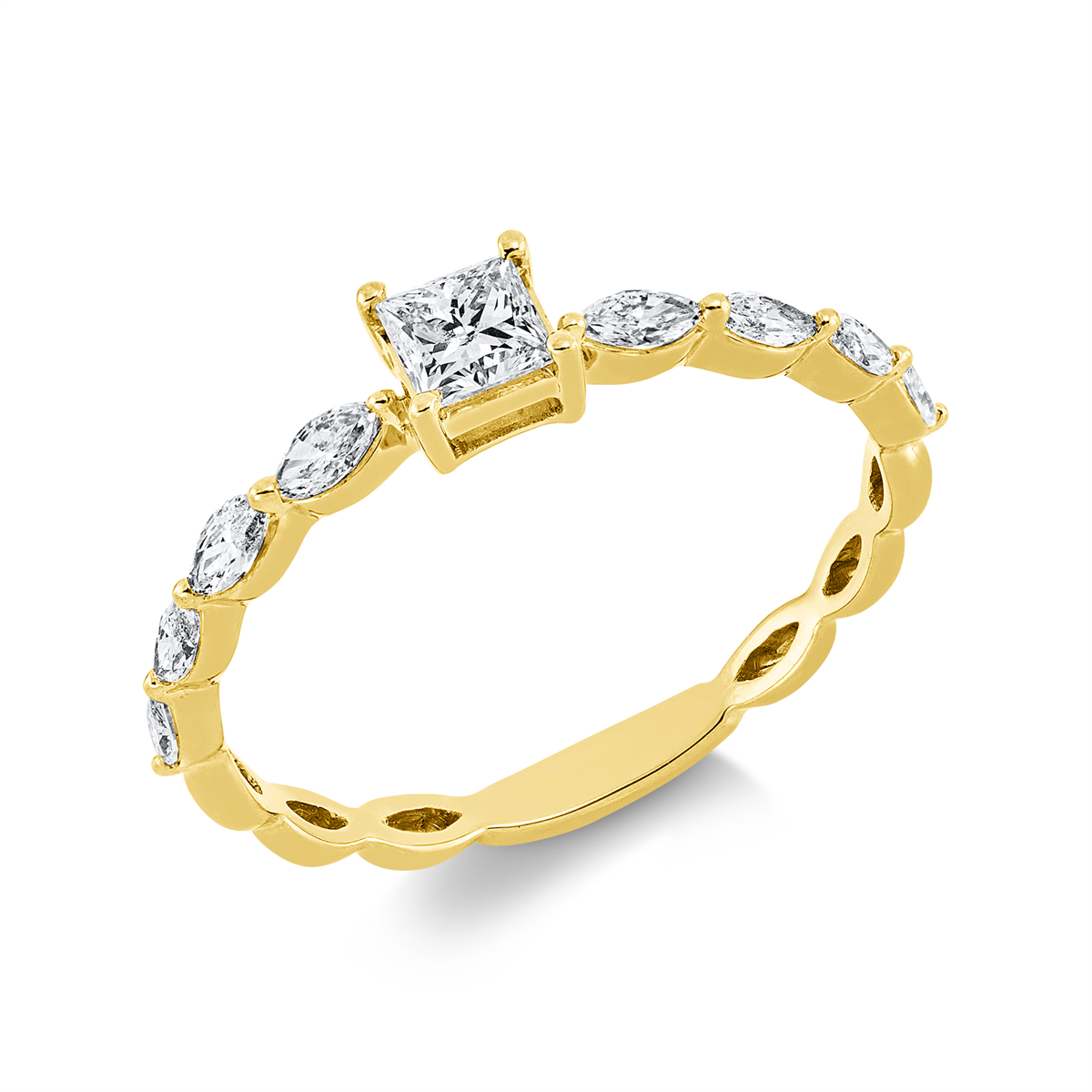 Ring 18 kt GG, 1 Princ. 0,25 ct, TW-si, 8 Navette 0,27 ct, TW-si, Weite:54