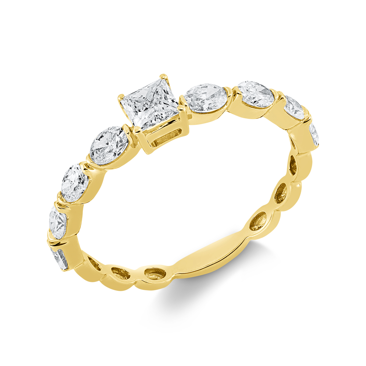 Ring 18 kt GG, 1 Princ. 0,25 ct, TW-si, 8 Oval 0,55 ct, TW-si, Weite:54
