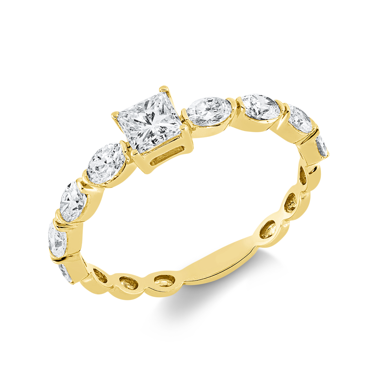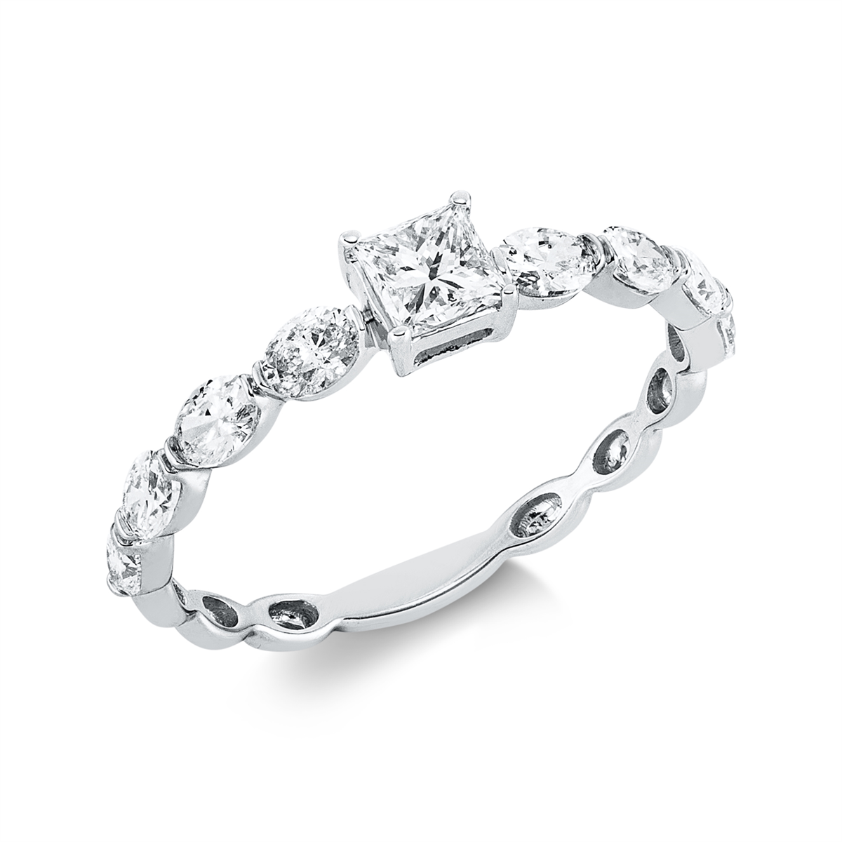 Ring 18 kt GG, 1 Princ. 0,32 ct, TW-si, 8 Oval 0,59 ct, TW-si, Weite:54