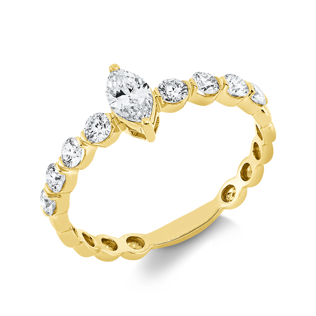 Ring 18 kt GG, 1 Navette 0,25 ct, TW-si, 8 Brillanten 0,41 ct, TW-si, Weite:54