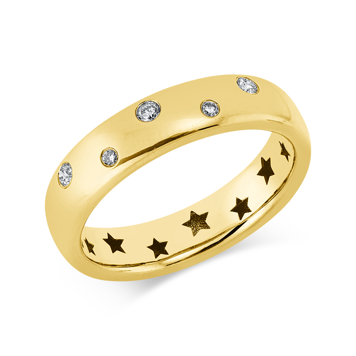 Ring 18 kt GG, 5 Brillanten 0,10 ct, gelb, Weite:52