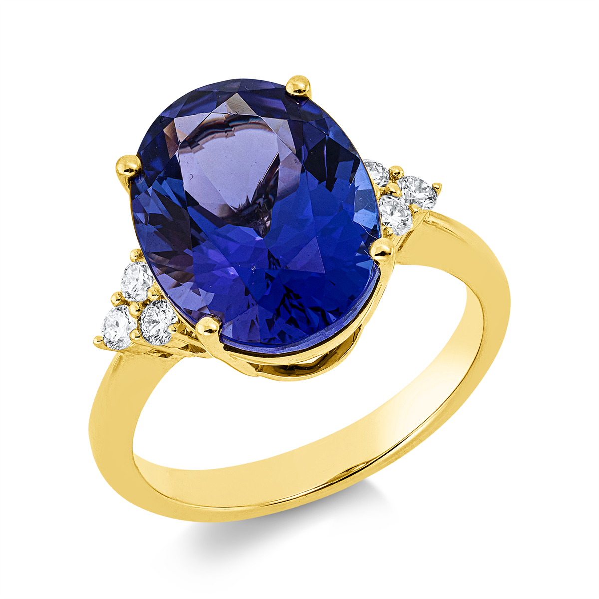 Ring 18 kt GG, 6 Brillanten 0,21 ct, TW-si, 1 Tansanit 7,22 ct blau, Weite:54