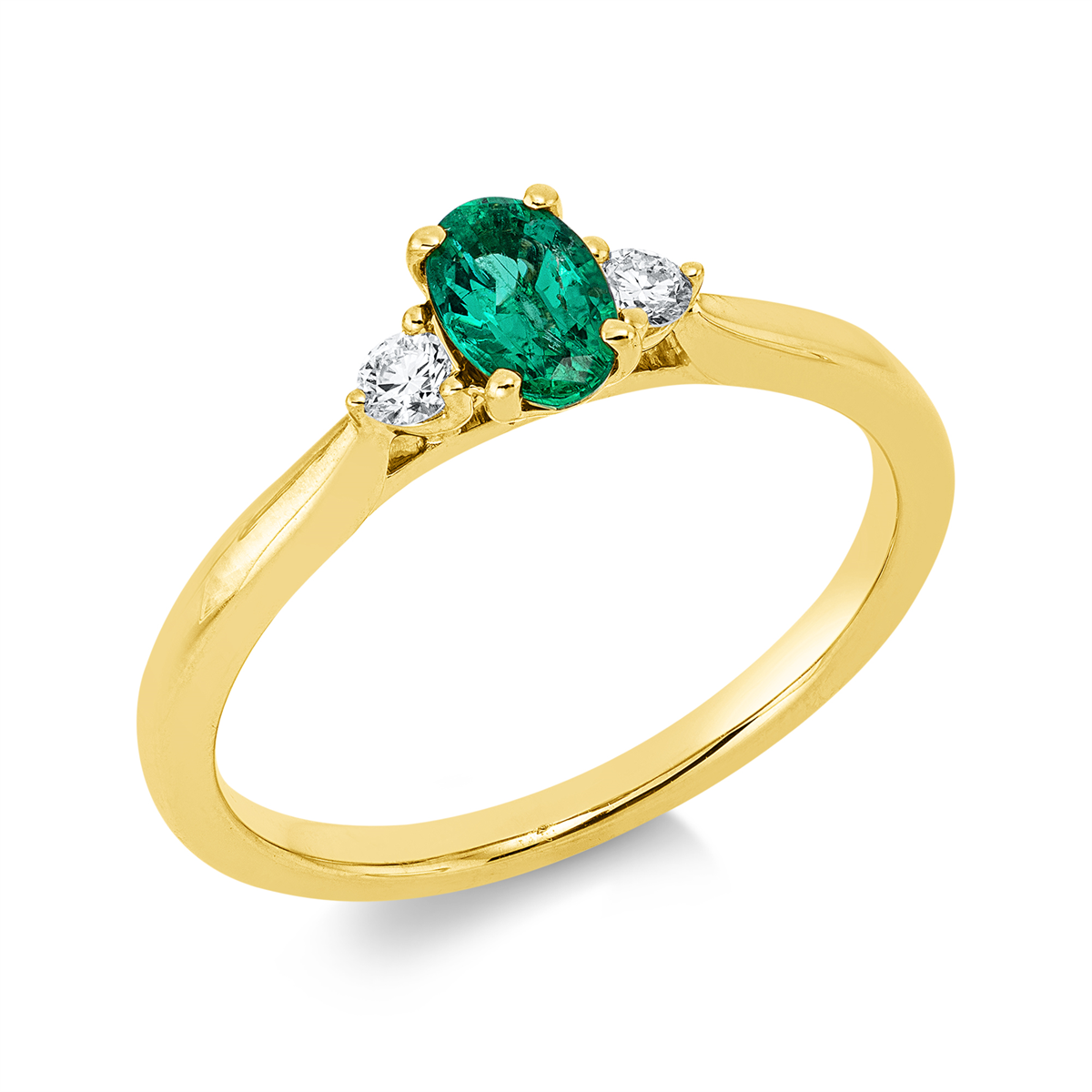 Ring 18 kt GG, 2 Brillanten 0,10 ct, TW-si, 1 Smaragd 0,36 ct grün, Weite:53