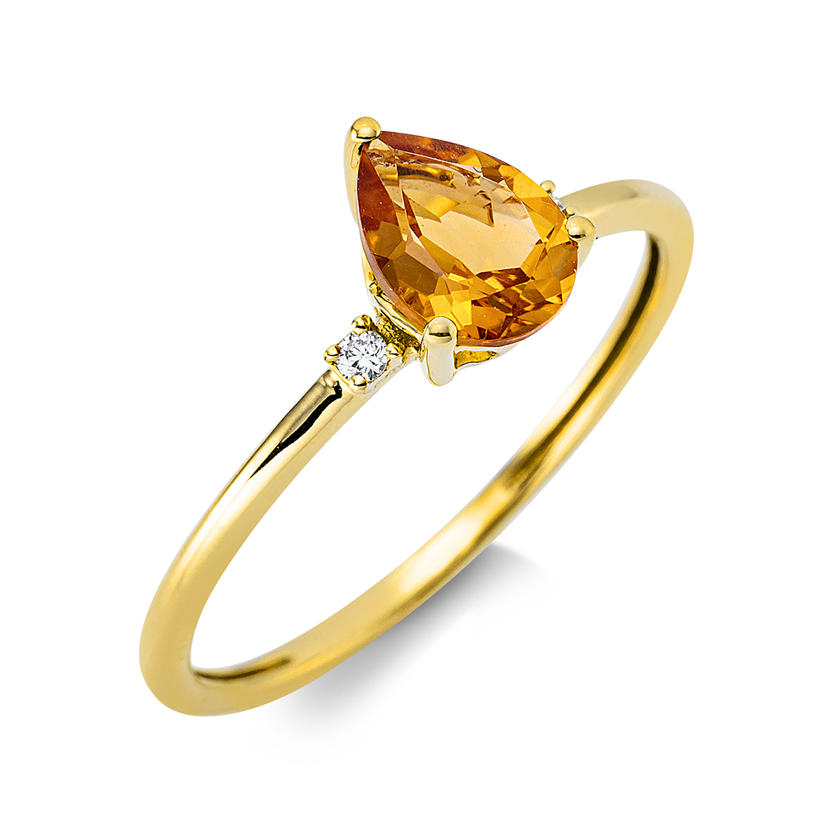 Ring 18 kt GG, 2 Brillanten 0,02 ct, TW-si, 1 Citrin 0,62 ct gelb, H:9,9 mm, B:9,4 mm, Weite:54