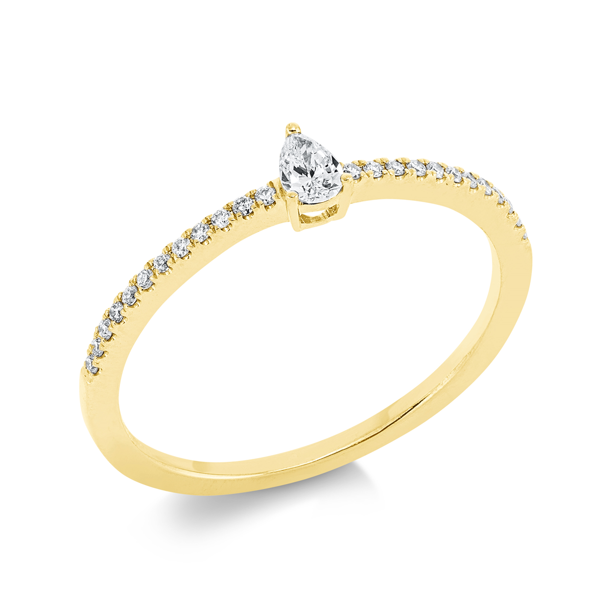 Ring 18 kt GG, 1 Tropfen 0,10 ct, TW-si, 24 Brillanten 0,08 ct, TW-si, Weite:54
