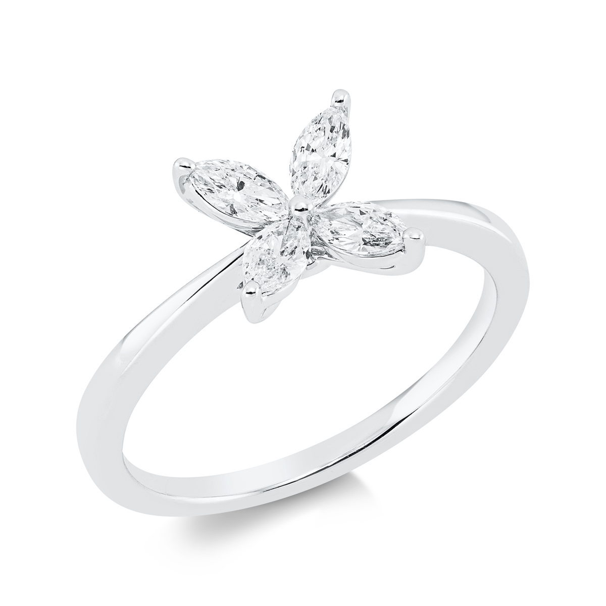 Ring 18 kt GG, 4 Navette 0,50 ct, TW-vsi/si, H:7,8 mm, B:7,8 mm, Weite:54