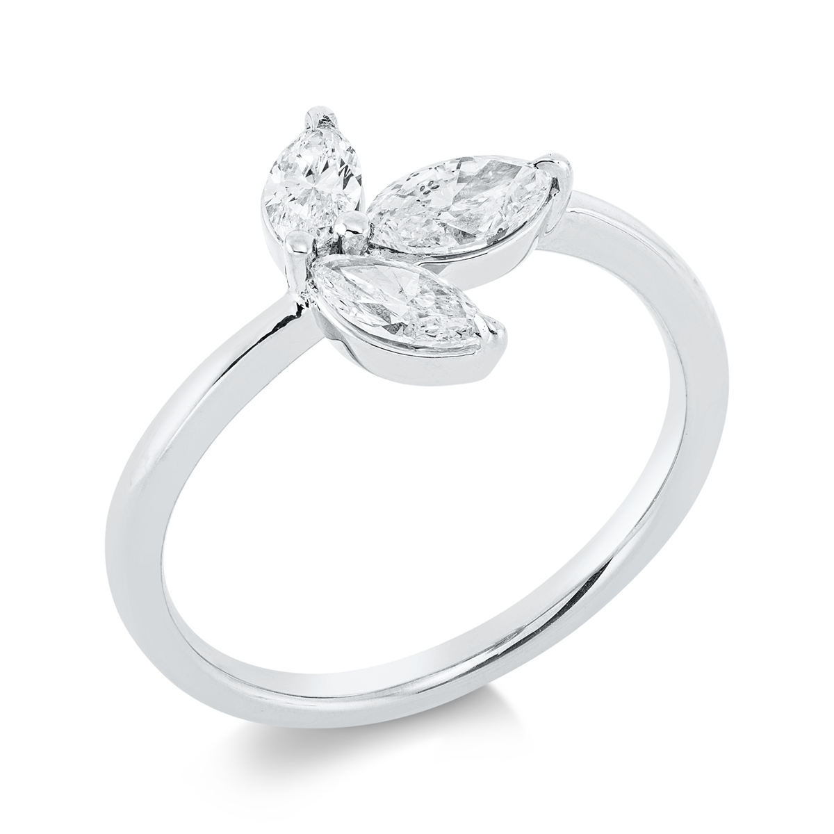 Ring 18 kt GG, 1 Navette 0,25 ct, TW-si, 1 Navette 0,33 ct, TW-si, 1 Navette 0,20 ct, TW-si, Weite:54