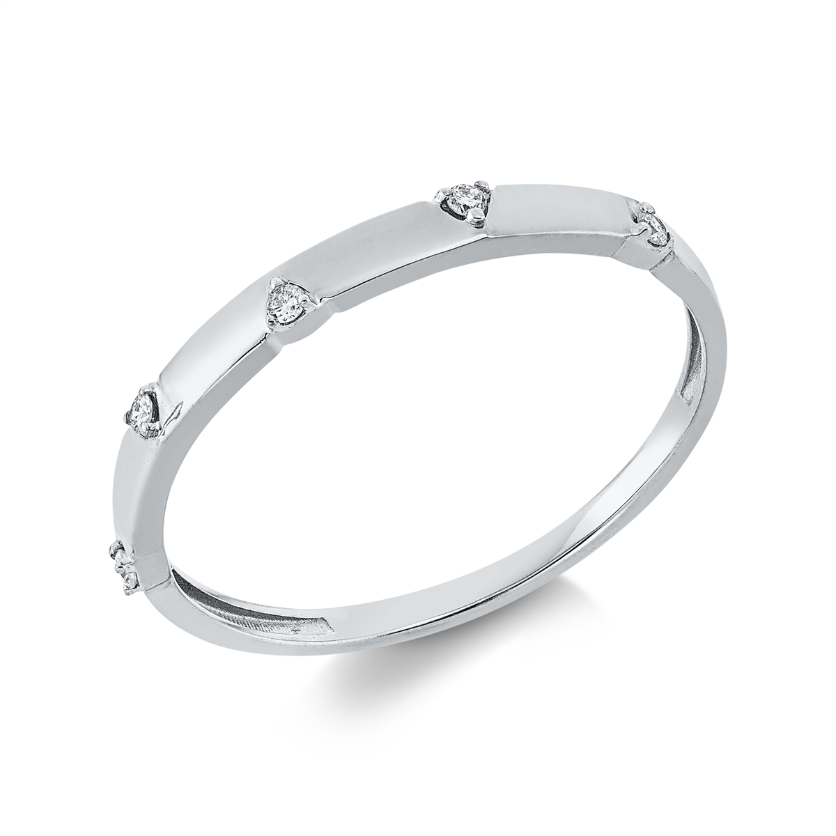 Ring 18 kt GG, Fassung rhodiniert, 5 Brillanten 0,05 ct, TW-si, Weite:54