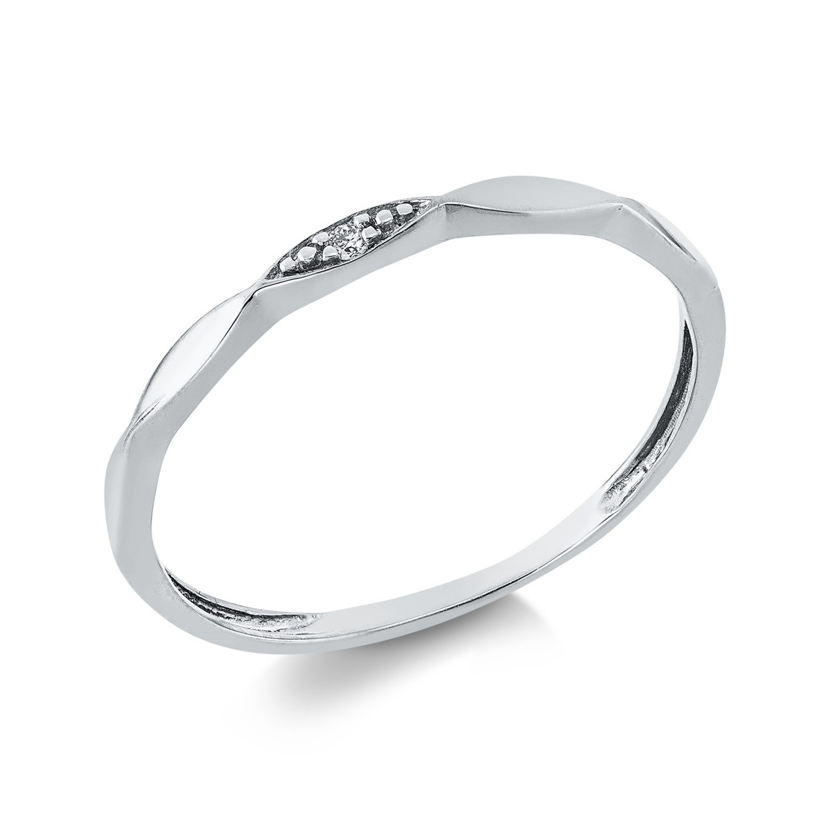 Ring 18 kt GG, Fassung rhodiniert, 1 Brill. 0,02 ct, TW-si, Weite:54