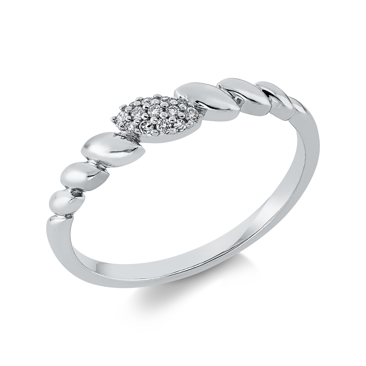 Ring 18 kt GG, Fassung rhodiniert, 13 Brillanten 0,06 ct, TW-si, Weite:54