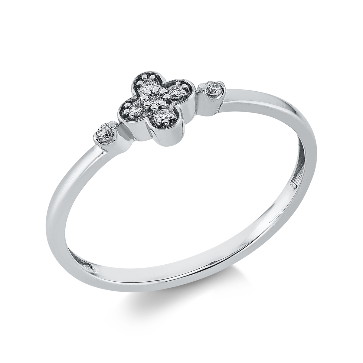 Ring 18 kt GG, Fassung rhodiniert, 7 Brillanten 0,06 ct, TW-si, Weite:54