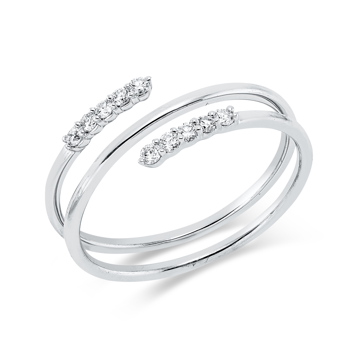 Ring 18 kt GG, Fassung rhodiniert, 10 Brillanten 0,14 ct, TW-si, B:8,0 mm, Weite:54