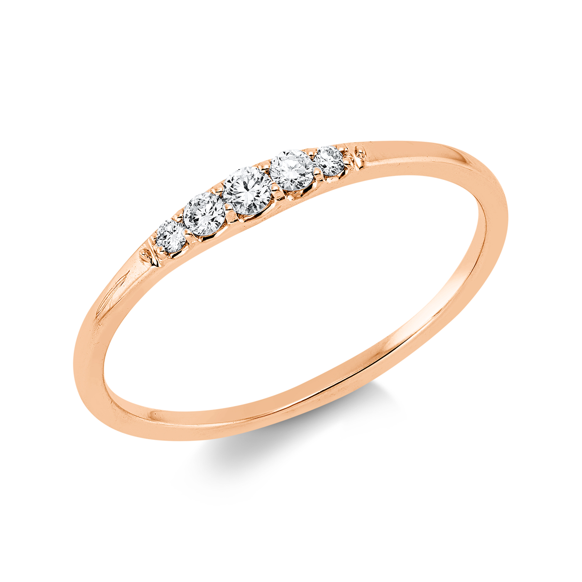 Ring 18 kt GG, Fassung rhodiniert, 2 Brillanten 0,04 ct, TW-si, 1 Brill. 0,04 ct, TW-si, 2 Brillanten 0,03 ct, TW-si, H:10,4 mm, B:2,3 mm, Weite:54