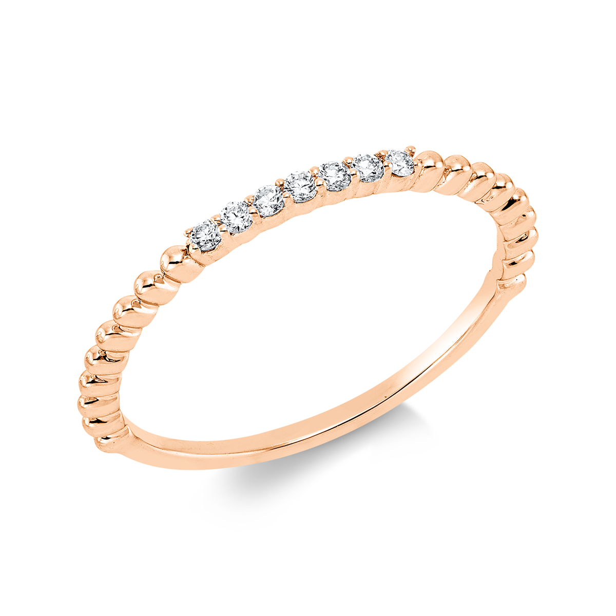 Ring 18 kt GG, Fassung rhodiniert, 7 Brillanten 0,08 ct, TW-si, H:10,2 mm, B:1,4 mm, Weite:54