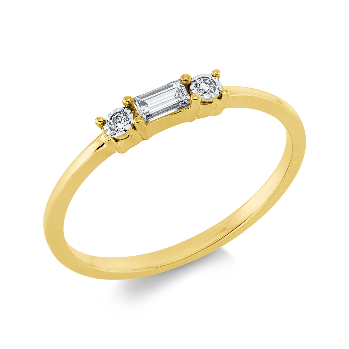 Ring 18 kt GG, Fassung rhodiniert, 1 Bag. 0,10 ct, TW-vsi/si, 2 Brillanten 0,03 ct, TW-vsi/si, Weite:54