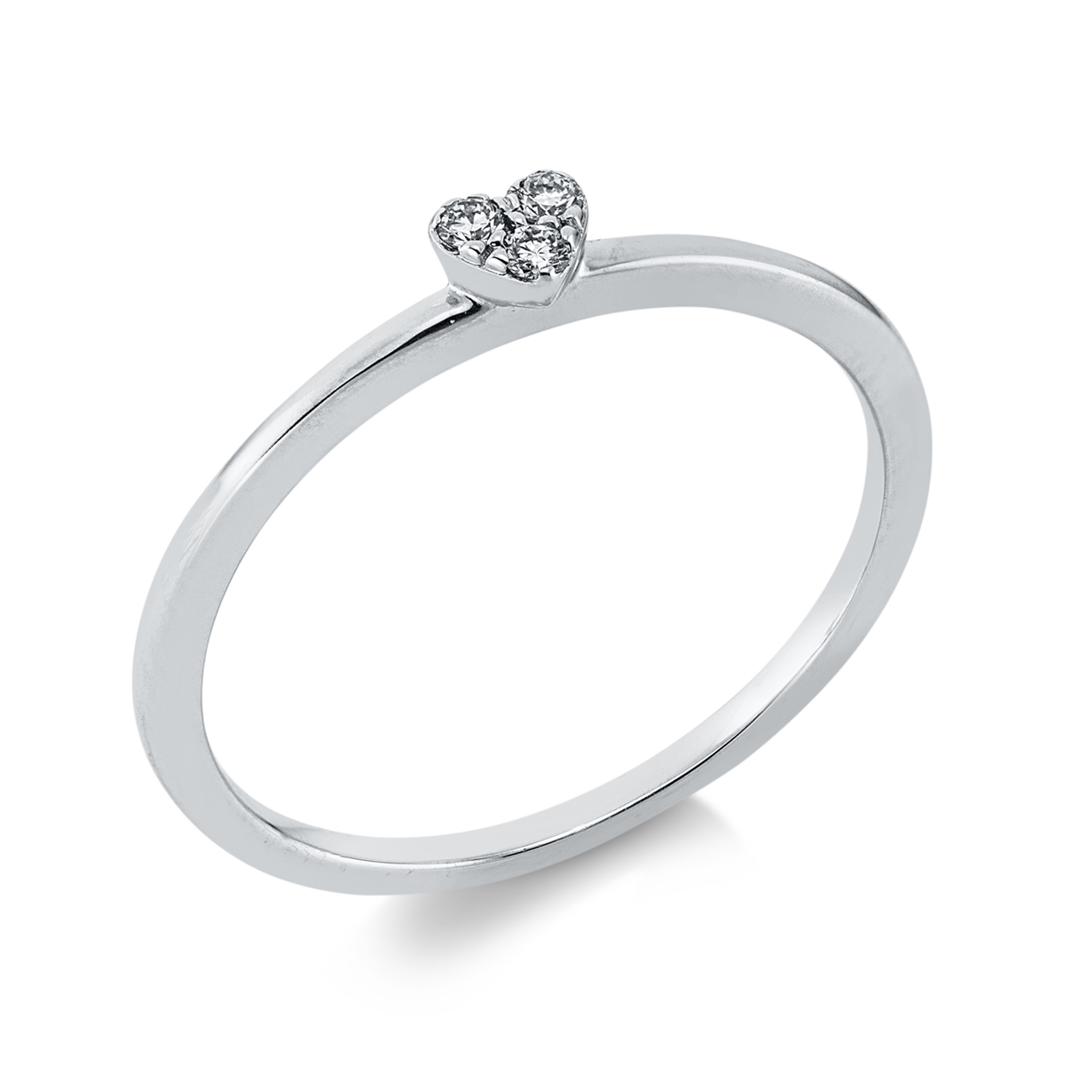 Ring 18 kt GG Herz, 3 Brillanten 0,04 ct, TW-si, Weite:54