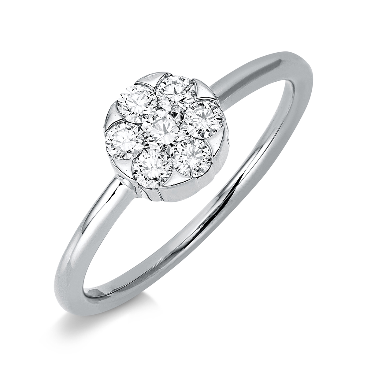 Ring 18 kt GG Kreis, 1 Brill. 0,10 ct, TW-si, 6 Brillanten 0,27 ct, TW-si, Ø:6,8 mm, Weite:54