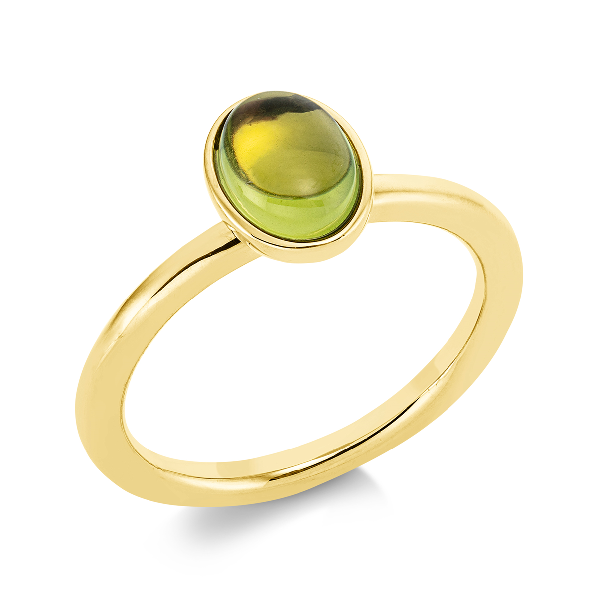 Ring 18 kt GG oval, 1 Peridot 1,50 ct grün, H:7,2 mm, B:8,9 mm, Weite:54