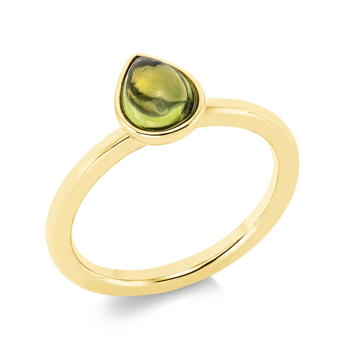 Ring 18 kt GG tropfen, 1 Peridot 1,22 ct grün, H:8,8 mm, B:7,1 mm, Weite:54