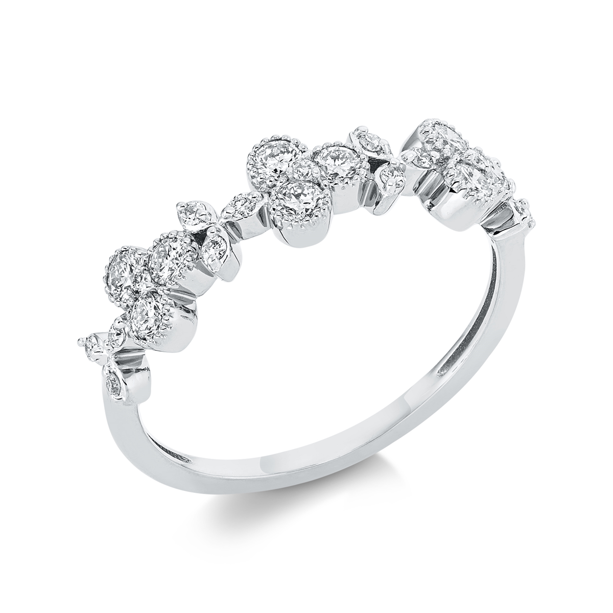 Ring 18 kt GG+WG, 12 Brillanten 0,08 ct, TW-si, 9 Brillanten 0,37 ct, TW-si, 3 Brillanten 0,02 ct, TW-si, B:5,2 mm, Weite:54