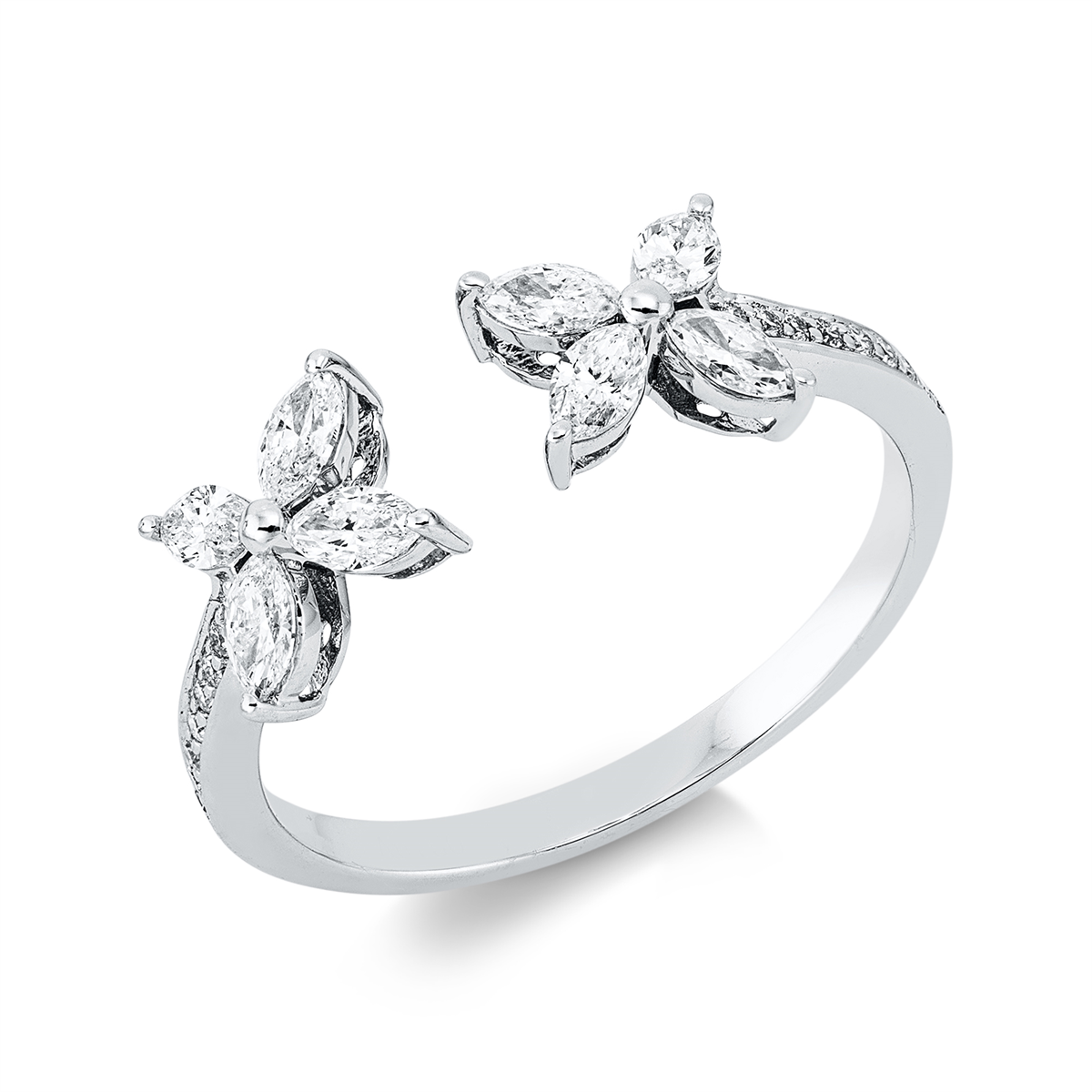 Ring 18 kt GG+WG, 8 Navette 0,46 ct, TW-vsi, 16 Brillanten 0,06 ct, TW-si, Weite:53