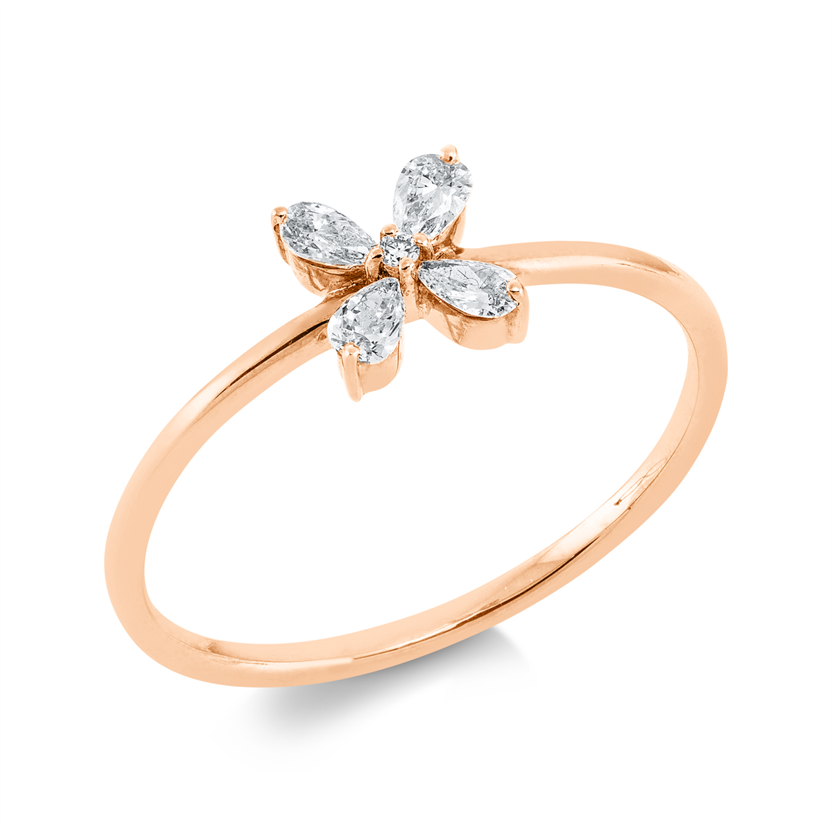 Ring 18 kt RG, 4 Tropfen 0,18 ct, TW-vsi, 1 Brill. 0,01 ct, TW-si, Weite:53