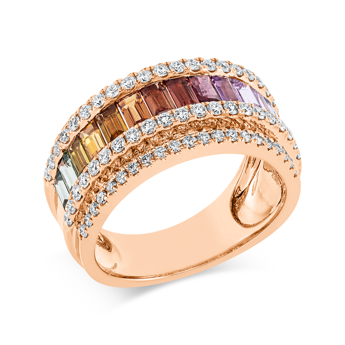 Ring 18 kt RG, 84 Brillanten 0,77 ct, TW-si, 14 Saphire 2,02 ct fancy, Weite:54
